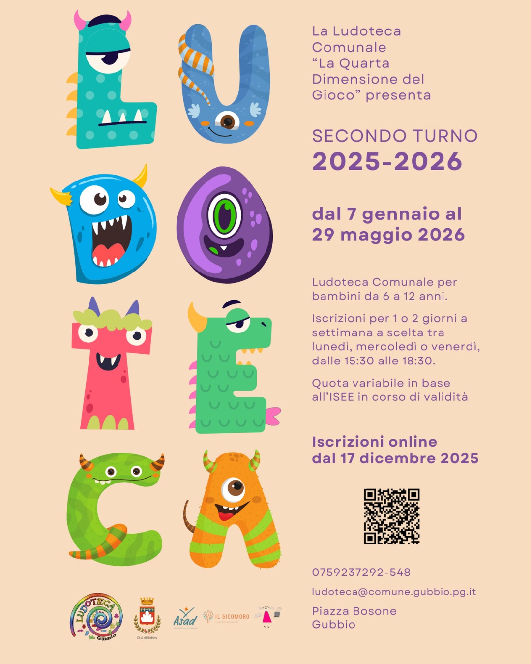 Al seguente link tutte le informazioni e il link al Modulo di iscrizione on line https://www.comune.gubbio.pg.it/it/servizi/iscrizione-ludoteca