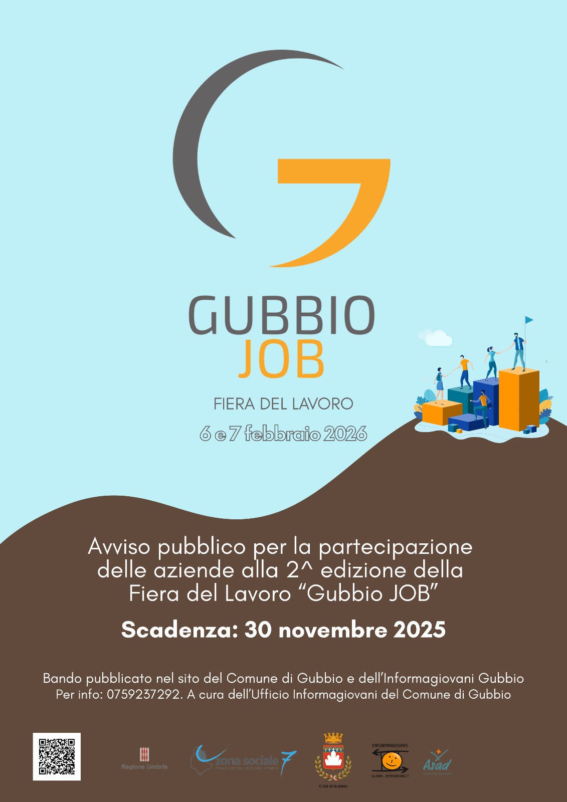 Il Comune di Gubbio organizza la seconda edizione di Gubbio JOB - Fiera del lavoro, in programma per il 6 e 7 febbraio 2026.