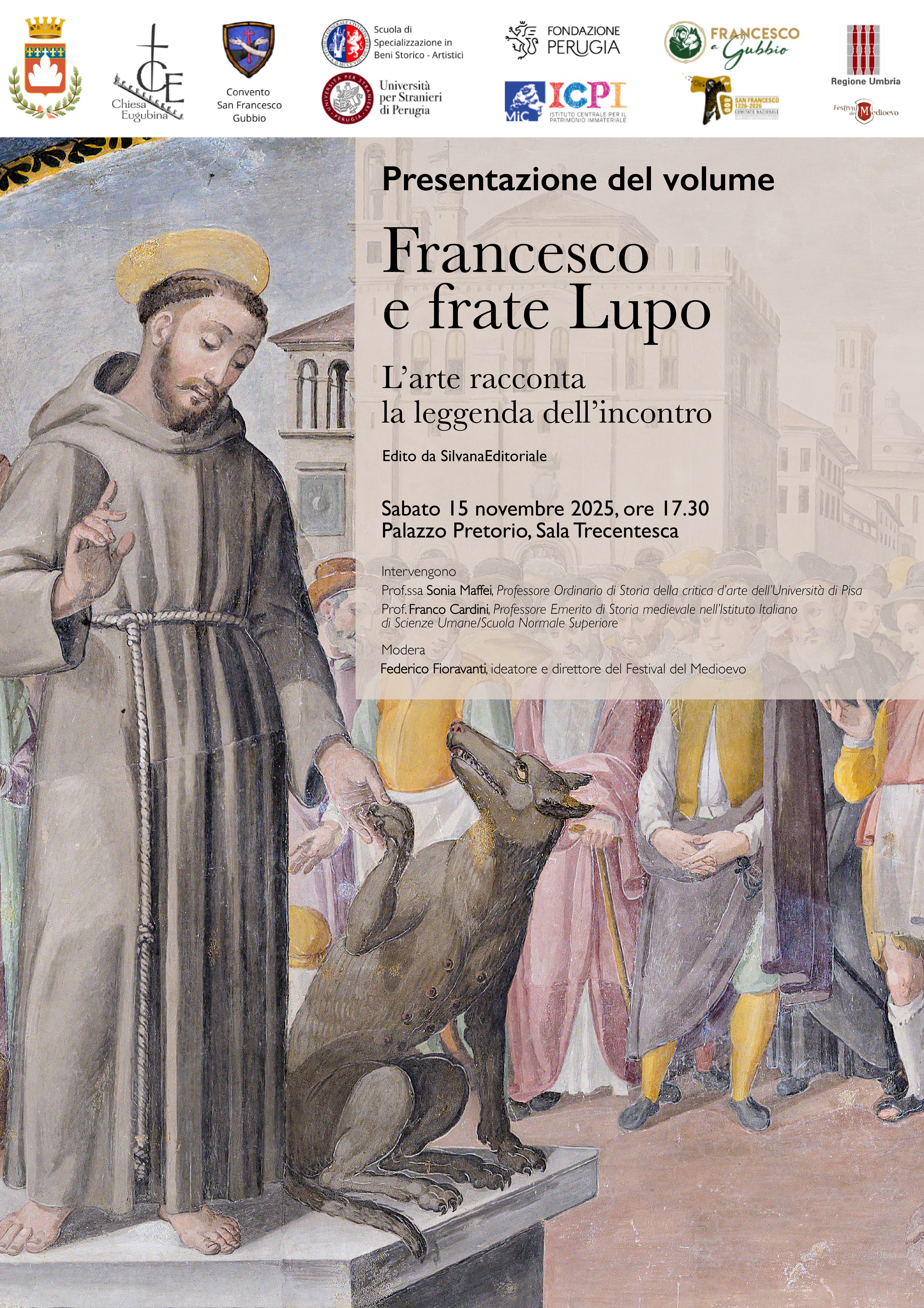 GUBBIO (11/11/2025) - Sarà presentato sabato 15 novembre alle 17.30, nella Sala Trecentesca di Palazzo Pretorio, il catalogo ufficiale della mostra “Francesco e frate Lupo. L’arte racconta la leggenda dell’incontro”, edito da SilvanaEditoriale e curato da Cristina Galassi ed Ettore A. Sannipoli.
